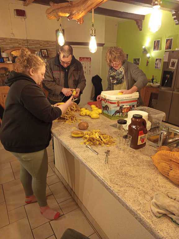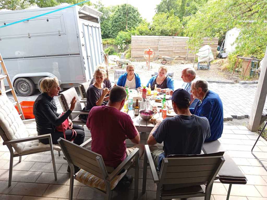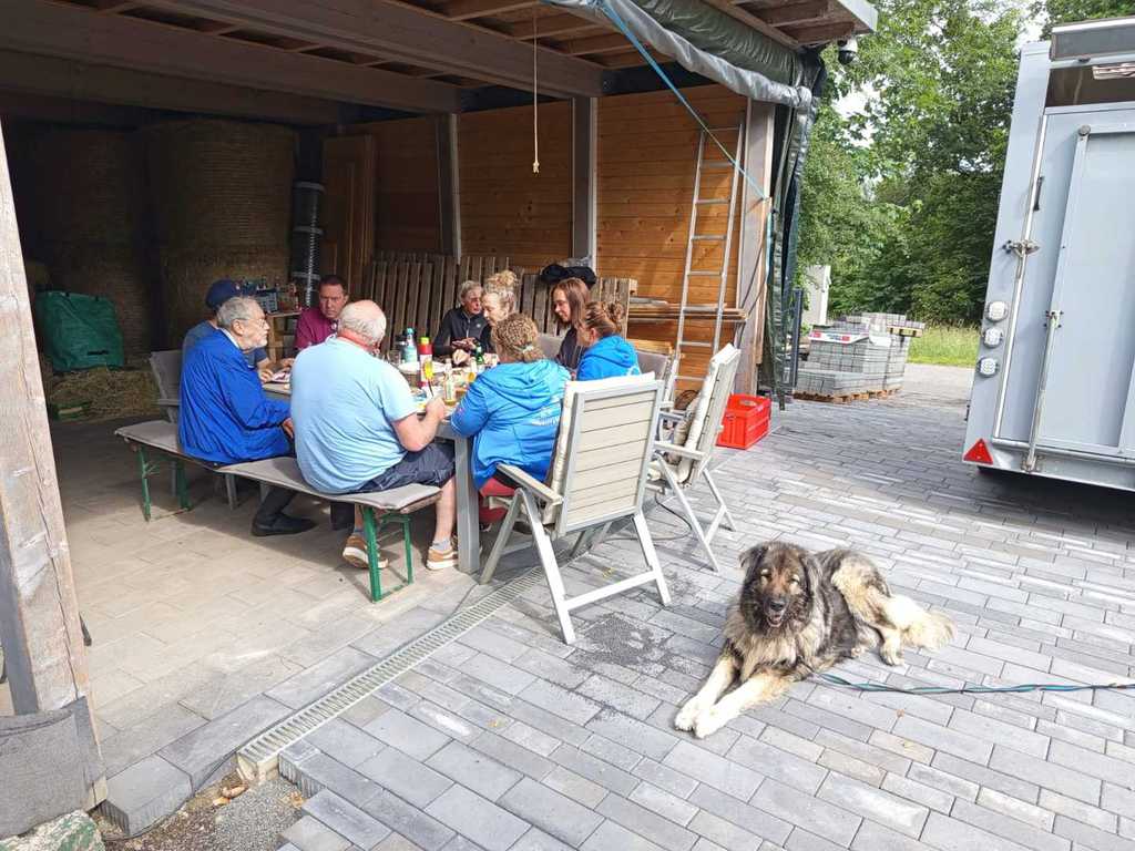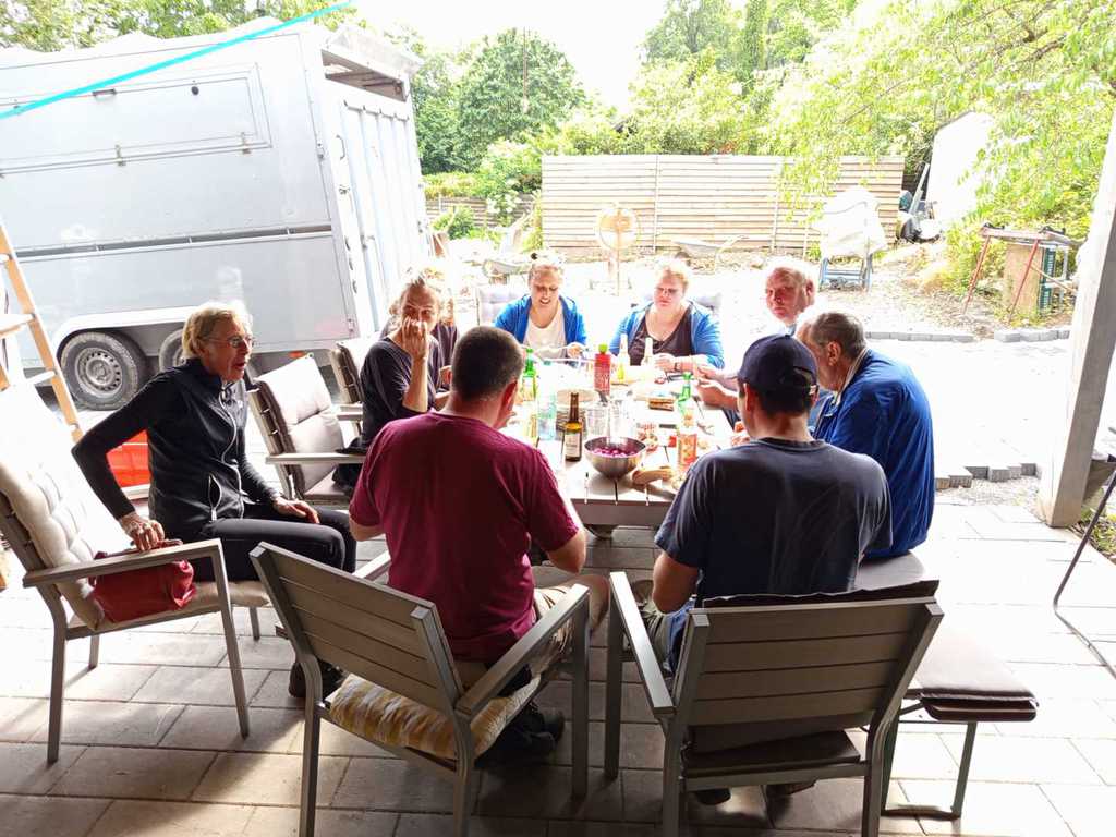 Nun kam die Stunde der Wahrheit für alle mit Hufen. Erstaunlich war, dass alle Pferde, die bereits schon in der Vergangenheit gewogen wurden, deutlich abgespeckt hatten. So waren alle mit dem aktuellen Gewicht der Pferde überwiegend zufrieden. Bei uns sah das natürlich dann ganz anders aus. Ein reichhaltiges Buffet aus mitgebrachten Salaten, Dips etc. zu dem ein oder anderem Gegrilltem lud zum ausgiebigen Stärken und Klönen ein. Vielen Dank an Sarah und Team.
