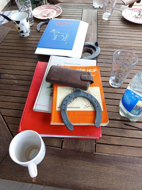 Dieses Thema wird nie langweilig und da Matthias von einem reichhaltigen Erfahrungsschatz profitiert, hat er uns neben einer Menge Theorie an zwei lebenen hübschen Vierbeinern erklärt, warum welcher Beschlag (oder auch kein Beschlag) bei jedem individuellem Pferd unterschiedlich richtig ist.