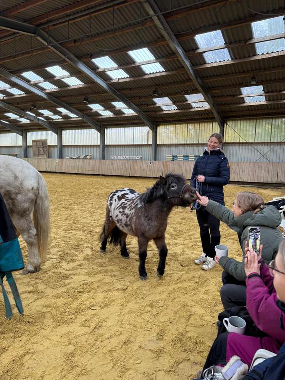 Feuchtfröhlich bei Nieselregen trafen wir uns zu einem ersten Lehrgang beim Team Borbeck. Nachdem alle Pferde in ihr Quartier gebracht waren und einer kurzen Eingangsbesprechung erläuterte Ralf anhand der Pferdes von Ellen, welche interessante Abstammung in diesem Pferd vereint ist und was im Weiteren gangtechnisch zu erwarten ist. Danach starteten die Reiterpaare, die jeweils entweder von Nadja oder von Ralf unterrichtet wurden. Mittags konnten wir uns im Kräuterstübchen bei Kaminfeuer und heißer Suppe aufwärmen und das Mitbringbuffet ließ kaum Wünsche offen. Nach dem Mittag zeigten Franka und Nadja mit ihren Pferden, welche Trainingsergebnisse nach jahrelangem konsequentem Aufbau erreicht werden kann. Danach ging es daran, die Erkenntisse des morgendlichen Unterrichtes für die weitere Unterrichtseinheit der Kursteilnehmer zu verwenden mit teilweise sehr sehenswerten Ergebnissen. Alle waren am Ende des Tages sehr zufrieden. Vielen Dank an das Team Borbeck und an Familie Höller für das tolle Kräuterstübchen.
