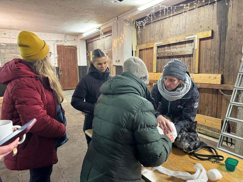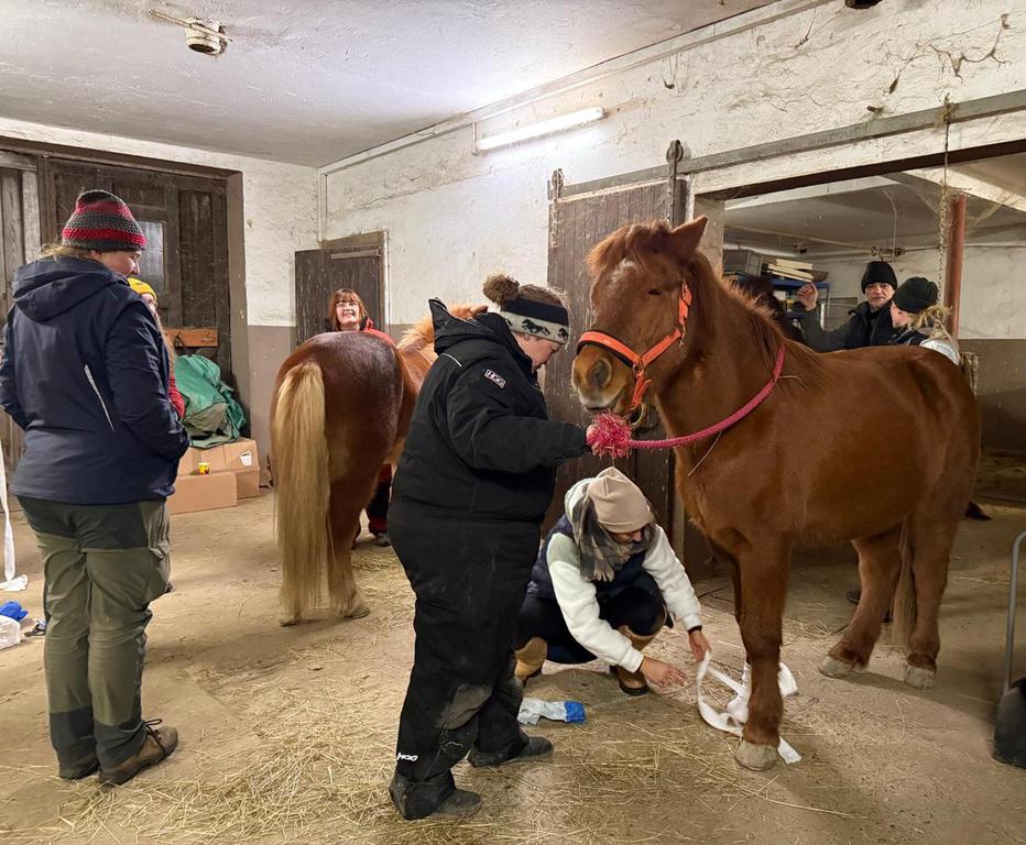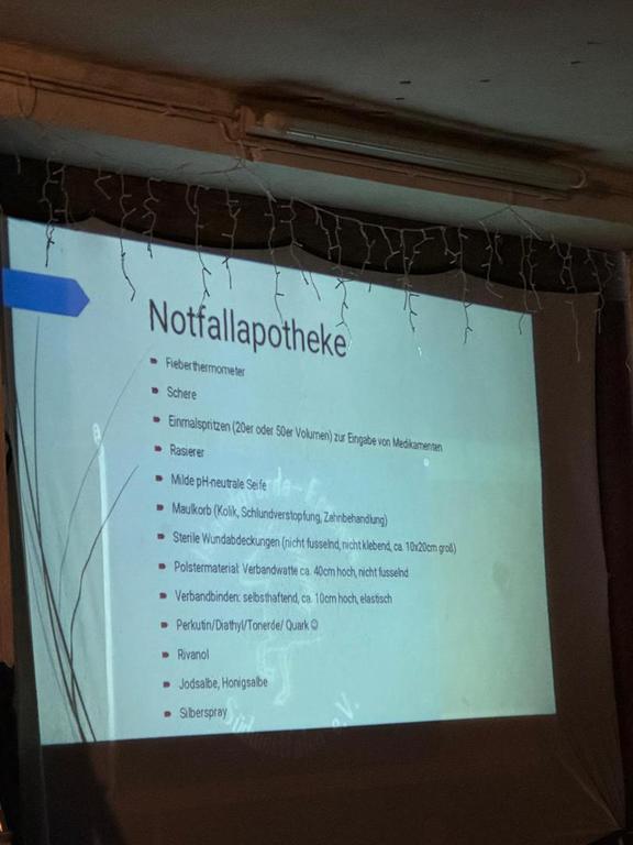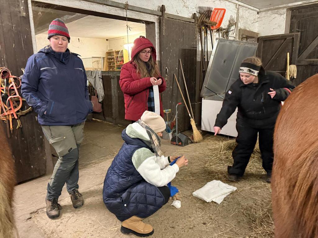 Bei eisigen Temperaturen lauschten wir dem knackig vorgetragenen und reichhaltig informativem Vortrag der beiden Tierärztinnen Anna-Lena Lappenbusch und Johanna Lammers mit Unterstützung von Annika Gerlich, die insbesondere auch mit ihrem extrem geduldigen Hund die praktischen Übungen begleitet hat. Es wurden abwechselnd für Pferd und Hund die verschiedenen Notsituationen beleuchtet und das Wichtigste hierzu auf den Punkt gebracht. Im Anschluss an die Theorie konnten wir ausgiebig verschiedene Verbände üben. Es war wirklich ein sehr kurzweiliger Tag. Vielen Dank an alle, die zum Gelingen des Tages beigetragen haben!